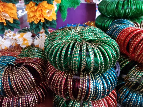 A very generous salesman gave the ladies four bangles each. Traditionally, the green is for fertility and the red is for love and passion. The younger members of our party were given both colors. Others whom we will not name here only got the red. The other colors are new and just for fashion. Worn properly over the pulse point, they protect the wearer’s chakra.