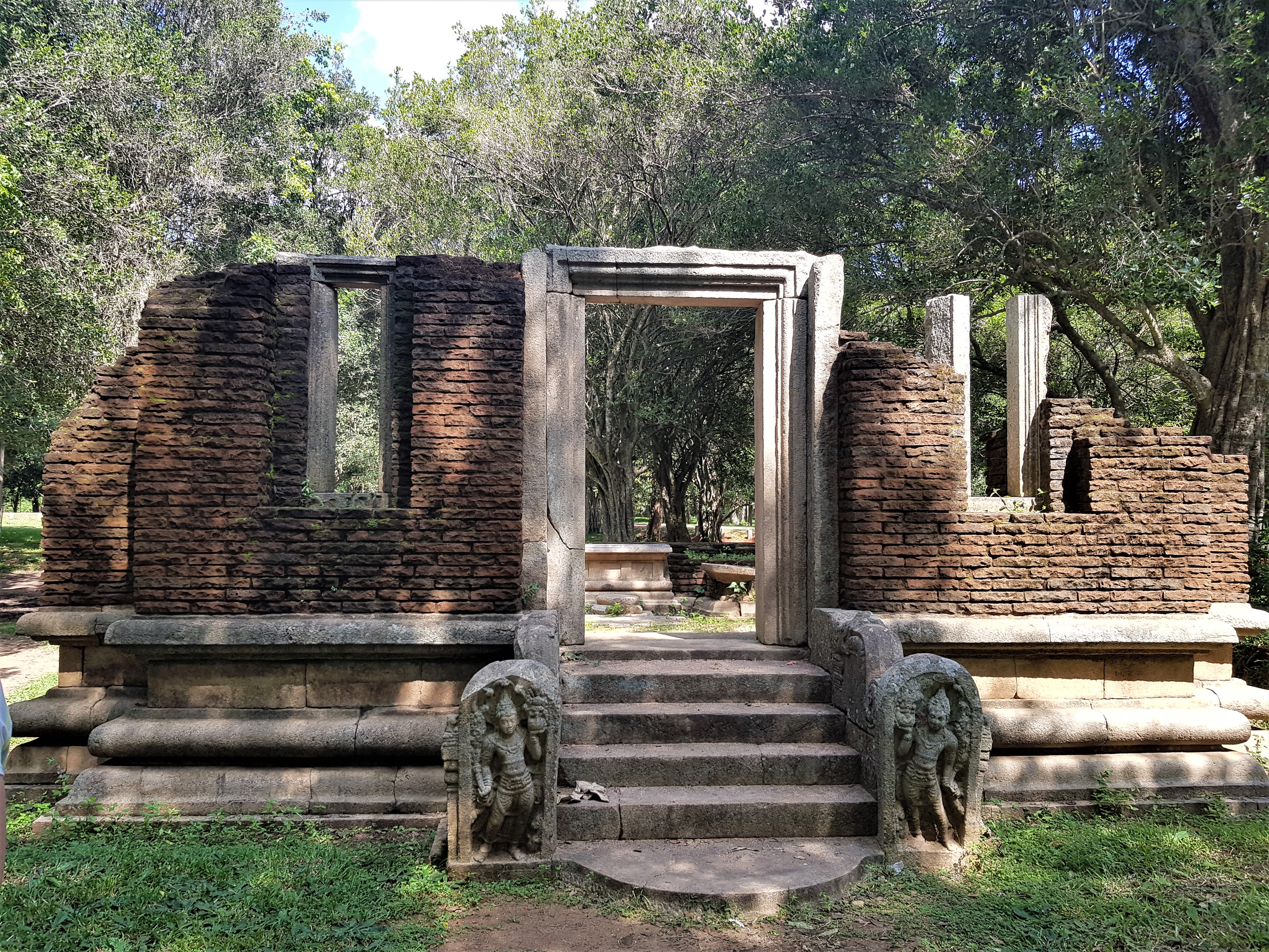 Previous Image Next Image 20171230_110009 Typical structure with guardians at steps. Most buildings have vertical beams, but no walls.