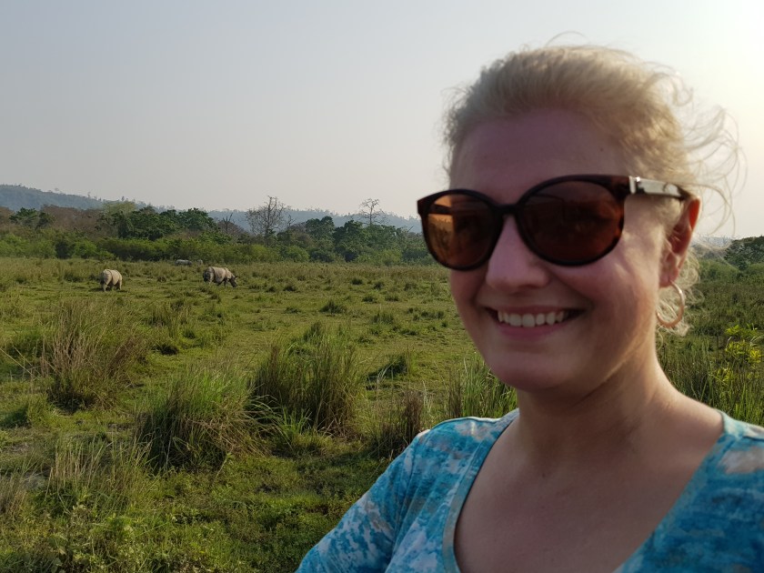 Mel with rhinos