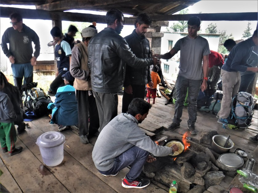 One of our guides is pitching in to make omelets.