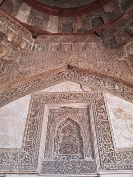 Previous Image Next Image 20181231_123232 Detailed inscriptions from the Quran in the mosque at Bara Gumbad.