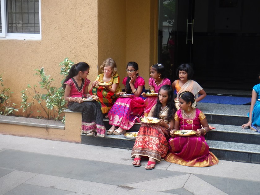Little girls waiting for the procession