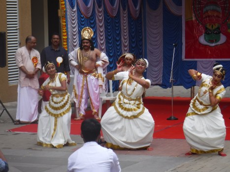 Women doing elaborate dance with hand and eye gestures