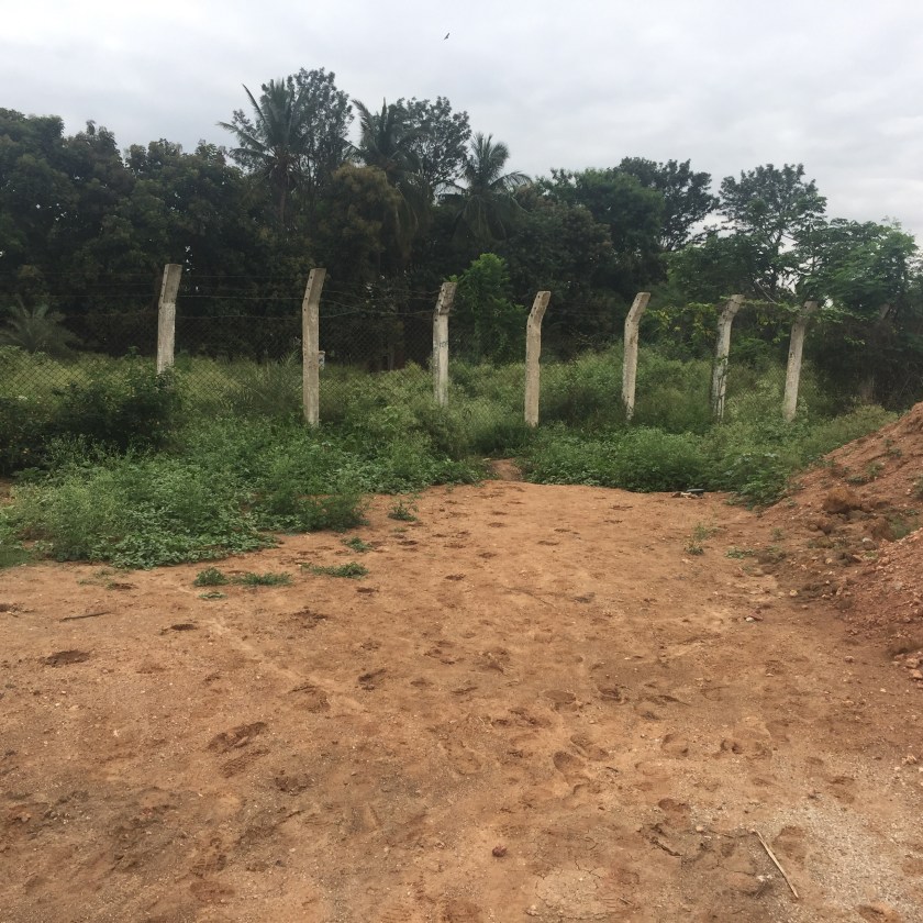 The lake side of the hole in the fence.