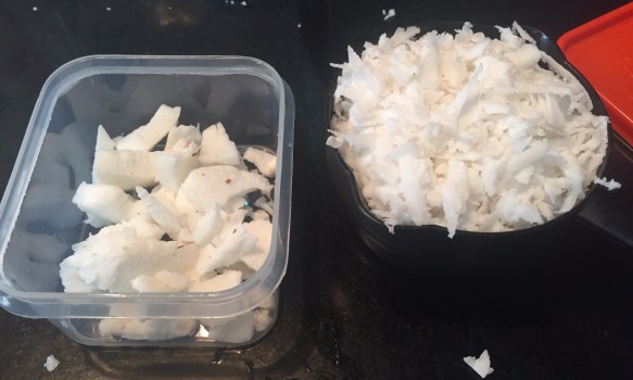 Coconut, both chopped (left) and grated (right).