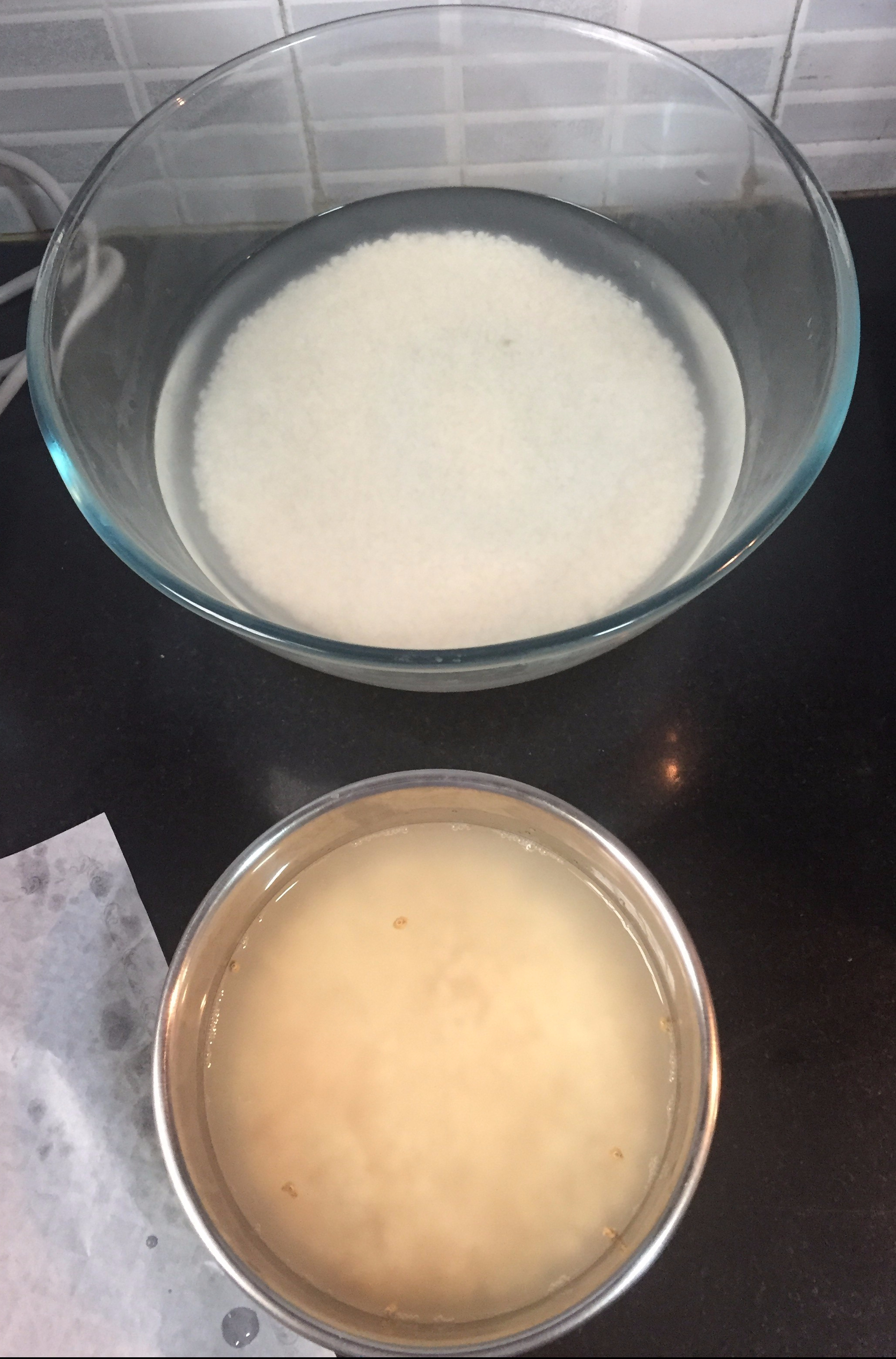 Soaking rice (top) and dal/fenugreek (bottom)