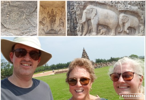 Previous Image Next Image mahabalipuram1 Some of the beautiful carvings in Mahabalipuram. Hard to see, but that’s the shore temple behind us.